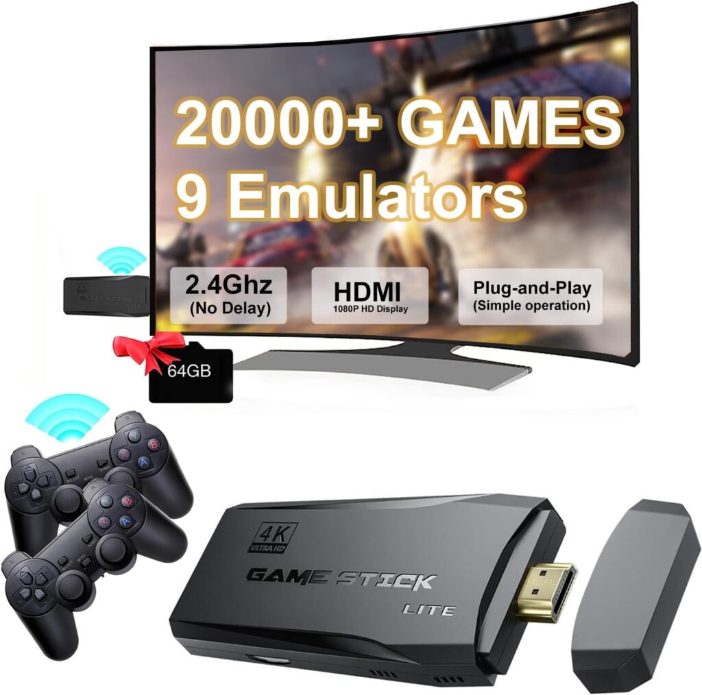 ¿Echas de menos los juegos de tu infancia? ¿O buscas un regalo divertido para niños o adultos? Esta consola retro de AMANKA es una pasada. Trae más de 20.000 juegos clásicos preinstalados, de 9 sistemas diferentes, así que hay de todo: desde los arcade más viejunos hasta joyas de los 80 y 90. Viene con dos mandos inalámbricos de 2.4 GHz, sin cables que te estorben, para que puedas jugar desde el sofá con total libertad. La conexión es superfácil: solo enchufas la consola a la corriente, la conectas al televisor por HDMI (sí, soporta salida 4K para una imagen nítida) y cambias al canal HD. No necesitas instalar nada, es plug & play puro. Ideal para partidas en solitario o para jugar con amigos y familiares, ya que los mandos permiten competir o cooperar. La consola es compacta, tiene un diseño retro molón y es apta para todas las edades. Perfecta para despertar nostalgia en los mayores y descubrir los clásicos a los más pequeños. ¡Horas y horas de diversión aseguradas!